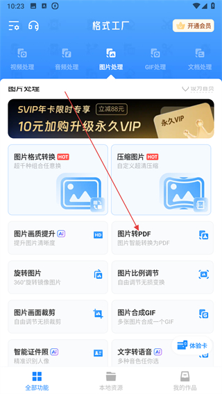 2、在圖片處理頁(yè)面中,找到圖片轉(zhuǎn)PDF選項(xiàng)并點(diǎn)擊,進(jìn)入圖片選擇界面。