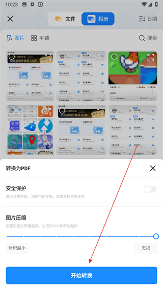 4、在轉(zhuǎn)換設(shè)置界面可調(diào)整圖片壓縮等參數(shù),確認(rèn)后點(diǎn)擊開(kāi)始轉(zhuǎn)換按鈕即可。