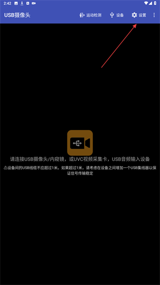 1、打開USB攝像頭的應(yīng)用,在首頁右上方點(diǎn)擊設(shè)置。