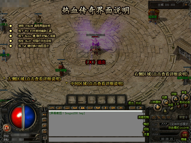 Pause Break 在游戲中截圖,截圖將以bmp格式自動保存在 Legend of Mir\Images 目錄下面