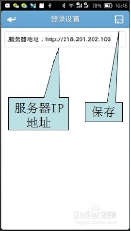 2、配置服務(wù)器:打開IVMS-5060,點擊右上角設(shè)置圖標(biāo),設(shè)置服務(wù)器地址:218.201.202.103,再點擊右上角保存按鈕,