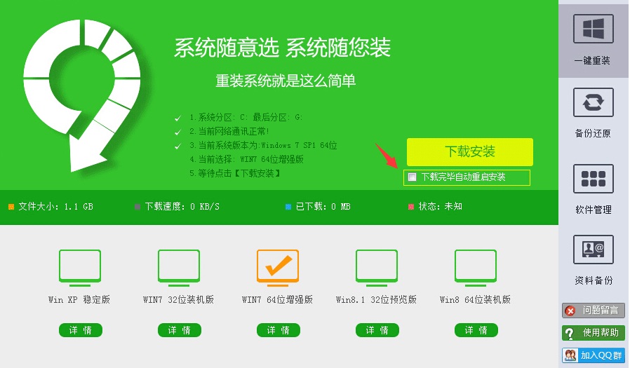 3、只要連接網(wǎng)絡(luò),輕輕一鍵即可隨意安裝WinXP/Win7/Win8.1(32以及64位)系統(tǒng);
