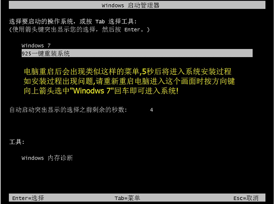 3、電腦重啟,選擇925一鍵重裝系統(tǒng)選項(xiàng)
