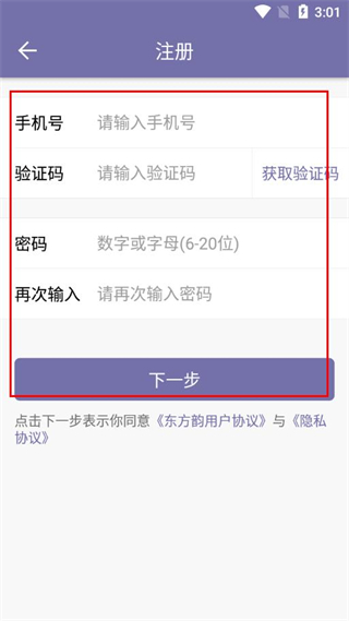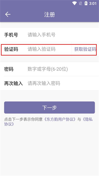2、填寫要注冊的手機(jī)號碼,點(diǎn)擊獲取驗(yàn)證碼鈕,填寫到對應(yīng)輸入框。