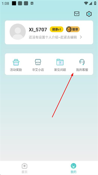 1、在尋艾app的首頁,點擊底部我的選項,進入個人中心頁面。