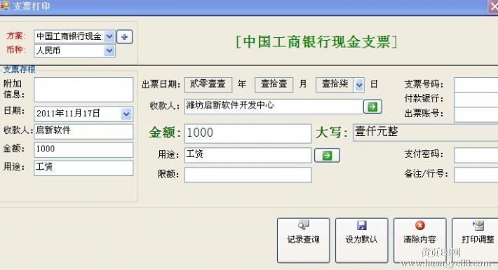 記錄查詢:進(jìn)行查詢支票打印的記錄、可以重新打印。
