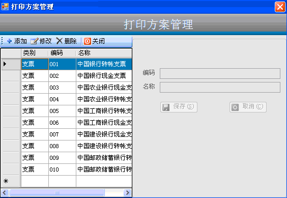 方案管理:各大銀行各種格式的票據(jù)、添加、修改。