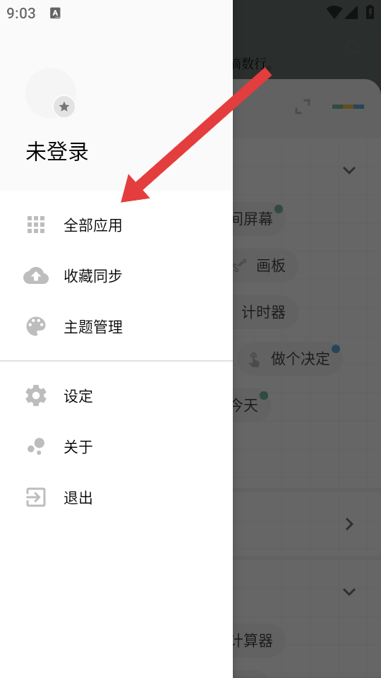 2、在側(cè)邊欄中,點(diǎn)擊全部應(yīng)用的選項(xiàng),進(jìn)入全部應(yīng)用列表的頁(yè)面。