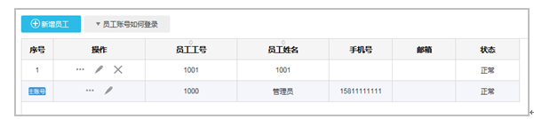 如果您有多個(gè)員工需要參與軟件的使用,可以點(diǎn)擊新增員工,設(shè)置員工賬號(hào)。