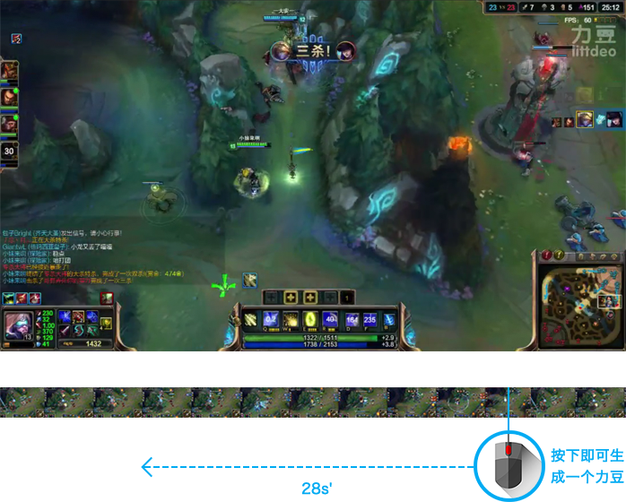 力豆拍拍是力豆APP的錄制游戲視頻插件程序,當(dāng)精彩出現(xiàn)時,按快捷鍵,之前的28秒自動錄制。 錄制好的視頻可由用戶選擇然后上傳,在手機(jī)等移動客戶端設(shè)備會即刻收到一條消 息,提示有新的力豆產(chǎn)品。之后在力豆APP上就對上傳的視頻進(jìn)行播放、編輯和發(fā) 布,你的好友就可欣賞你的力豆了。
