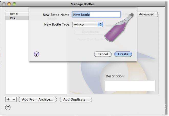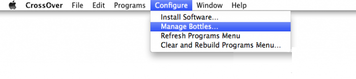 首先我們要新建立一個 Windows 的 bottle (Configuer-ManageBottles)