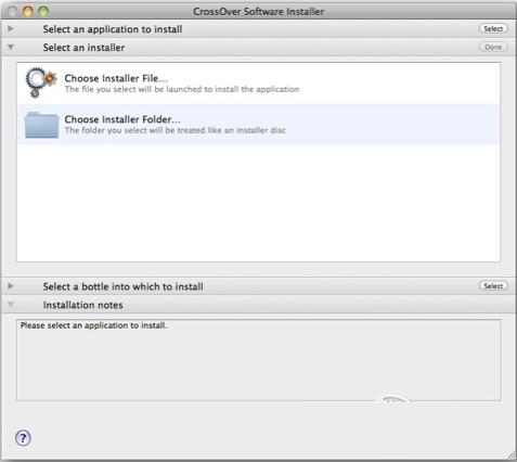 打開 Finder,把騰訊通 RTX 所需要的必須文件(本文最后會給出下載)放到 “你的用戶/Library/Application Support/CrossOver/Bottles/你的bottle名字/drive_c/” 路徑下。然后打開 Crossover,選擇 “Configuer-Install Software”。在這個窗口選擇 “Select an installer”,在 “Choose Installer Folder” 下面選擇你的騰訊通 RTX 安裝包。