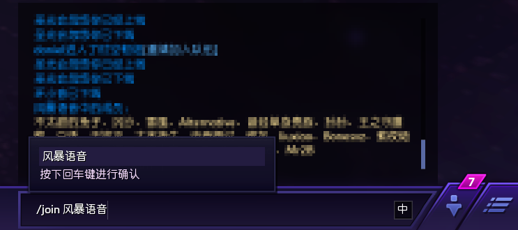 在游戲聊天中加入“風暴語音”頻道(聊天輸入框中輸入指令’/join 風暴語音’并按回車發(fā)送)