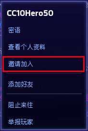 l右鍵點擊紅框位置(隊員戰(zhàn)網(wǎng)昵稱)處即可邀請組隊!