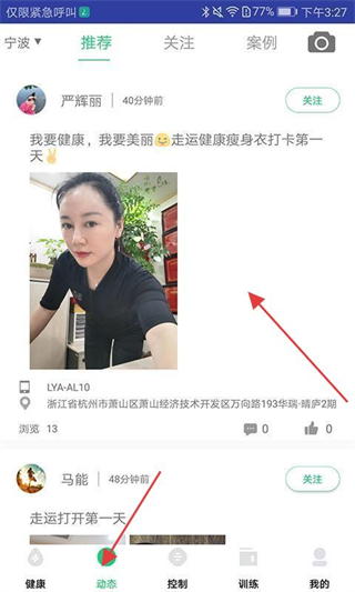 2、能瀏覽其他用戶的健身打卡動態(tài),也可發(fā)布自己的內(nèi)容互動。