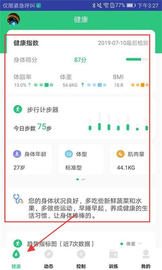 1、查看健康指數(shù)、步行計步、身體年齡等數(shù)據(jù),還會提供健康建議。