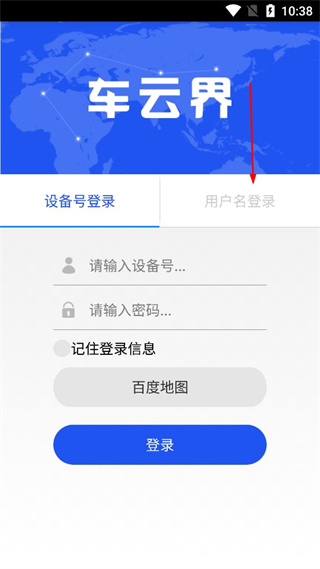 1、進(jìn)入車云界登錄頁面,點(diǎn)擊用戶名登錄選項(xiàng)切換至對(duì)應(yīng)登錄界面。