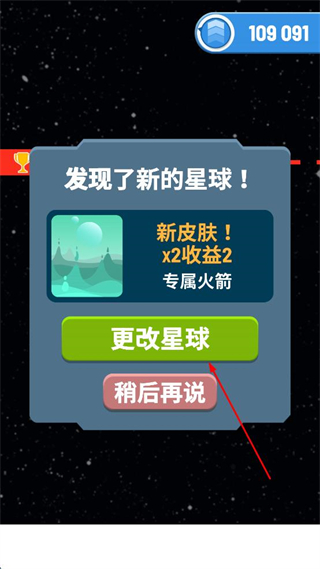 4、切換星球后,可在火箭選擇界面挑選不同樣式的火箭,繼續(xù)游戲。