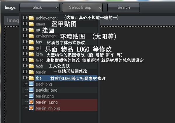 2.MTE可以修改的圖片相對(duì)較少,terrain.png 的區(qū)塊分布信息陳舊,建議后期制作手工修改。