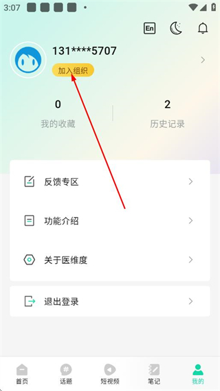 2、在個人中心頁面點(diǎn)擊加入組織按鈕,進(jìn)入加入組織頁面。