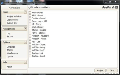 Driver Sweeper是Guru3D網(wǎng)站開(kāi)發(fā)的一款驅(qū)動(dòng)程序卸載工具,可以徹底清除系統(tǒng)內(nèi)殘留的一些舊驅(qū)動(dòng),非常適合升級(jí)驅(qū)動(dòng)或更換硬件的情況.Driver Sweeper目前支持Ageia Physx物理卡,ATI顯卡,NVIDIA顯卡,NVIDIA芯片組,創(chuàng)新聲卡,RealTek聲卡,微軟鼠標(biāo)等設(shè)備驅(qū)動(dòng)的管理,支持Windows 2000/XP/Vista的32/64位t操作系統(tǒng),完全免費(fèi)。