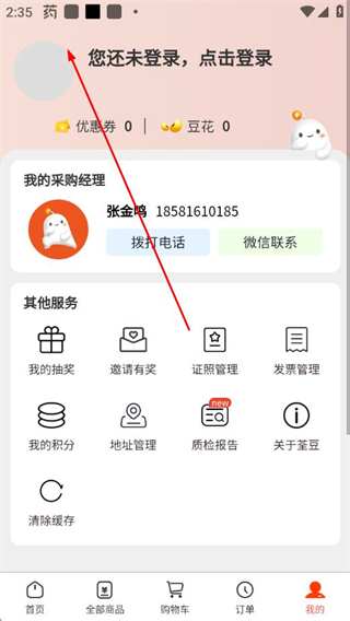 1、在荃豆健康app的首頁,點(diǎn)擊底部我的選項(xiàng),進(jìn)入個人中心頁面。