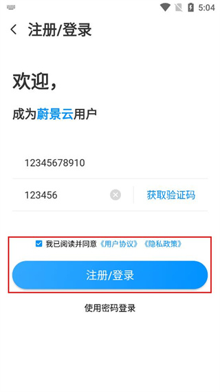 4、勾選我已閱讀并同意相關(guān)協(xié)議的選項,點擊界面中的注冊/登錄按鈕完成操作。