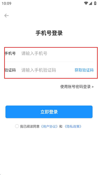 3、在手機(jī)號(hào)登錄界面的手機(jī)號(hào)欄輸入號(hào)碼,再點(diǎn)擊獲取驗(yàn)證碼并填寫(xiě)對(duì)應(yīng)內(nèi)容。