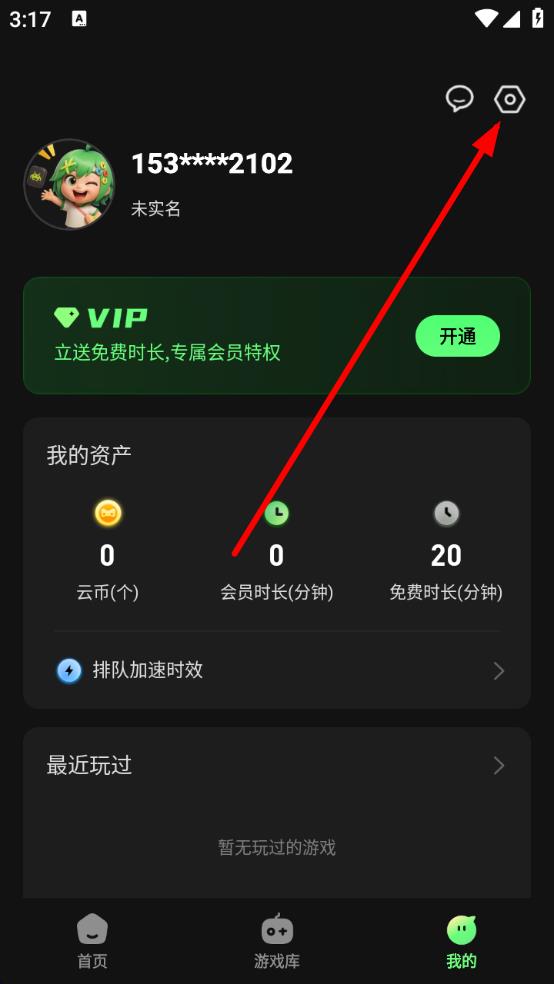 1、打開格來云游戲應用,點擊底部導航欄中的我的,進入個人頁面。