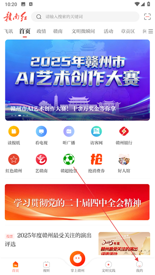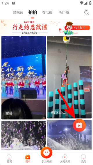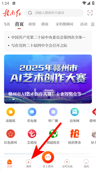1、打開贛南紅app,在首頁點擊底部視聽,進入視聽的頁面。