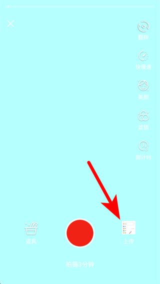 3、在視頻創(chuàng)作界面點擊上傳,進入相機膠卷選擇的頁面。