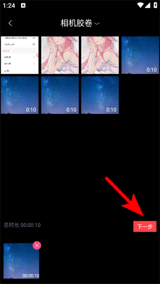 4、在相機膠卷頁面選擇要上傳的視頻,點擊下一步完成上傳。