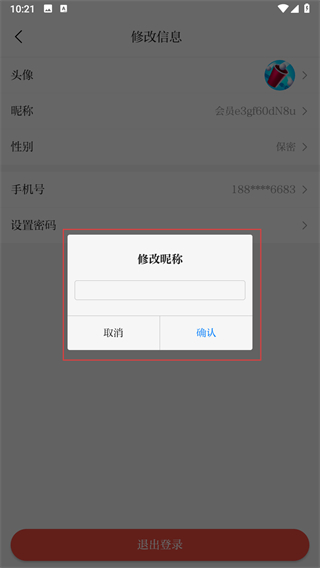 2、在修改信息頁面點擊昵稱選項,彈出修改昵稱提示框。