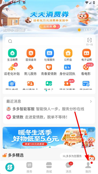 1、在多彩寶app首頁,點擊底部我的,進入個人中心頁面。