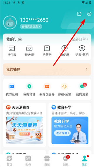 2、進入個人中心后,點擊右上角的設置圖標,進入設置界面。