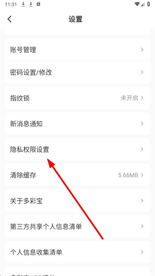 3、在設置頁面中,找到隱私權限設置選項并點擊,進入權限管理頁面。