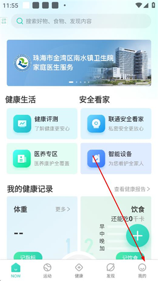 1、在NOW健康app的首頁,點(diǎn)擊底部我的選項(xiàng),進(jìn)入個(gè)人中心頁面。