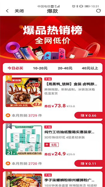 4、熱門搶購(gòu)產(chǎn)品以榜單排名的方式推送,方便快速把握優(yōu)惠購(gòu)物機(jī)會(huì);