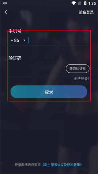 3、在登錄頁面填寫手機號、獲取并輸入驗證碼后,點擊登錄按鈕完成登錄。