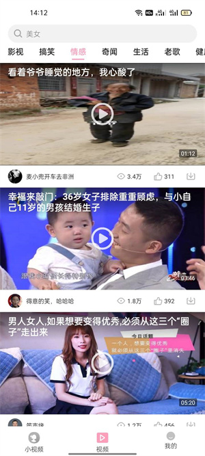 - 包含了各種類型的精彩視頻內(nèi)容,各種生活、搞笑、情感、健康、影視、音樂等,分類也非常的明確;