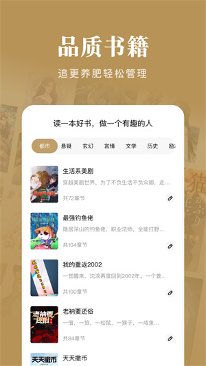 蜜蜂追書是手機(jī)閱讀工具,帶來個性化閱讀服務(wù),每天自由閱讀看書,各類型的小說都能在線閱讀看書,還有超豐富的讀物書籍讓大家看書,簡單的操作快速加入書架,還能導(dǎo)入本地小說閱讀,對你的書籍進(jìn)行編輯排序等等。