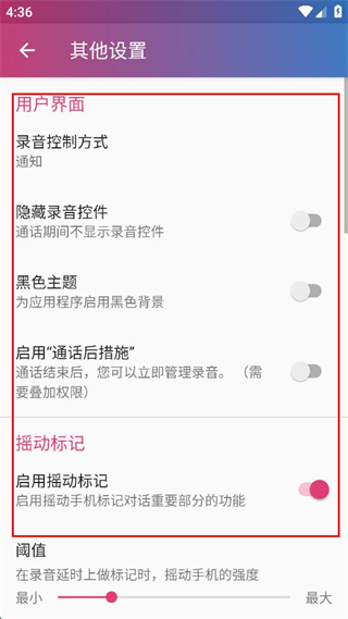 4、在其他設(shè)置界面,可查看用戶界面搖動(dòng)標(biāo)記等設(shè)置項(xiàng),完成相關(guān)配置操作。