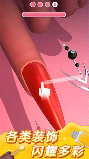 美甲小屋游戲是一款美甲屋游戲,游戲中有很多的美甲油可供玩家選擇,指甲油上色非常的順滑,有各種各樣的裝飾可供玩家選擇,十分的閃耀多彩,還能進(jìn)行解壓的修甲,不斷的升級裝修自己的店鋪,提升美甲店的規(guī)格,邂逅各種有趣故事。