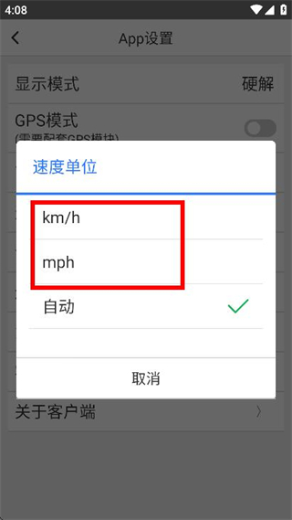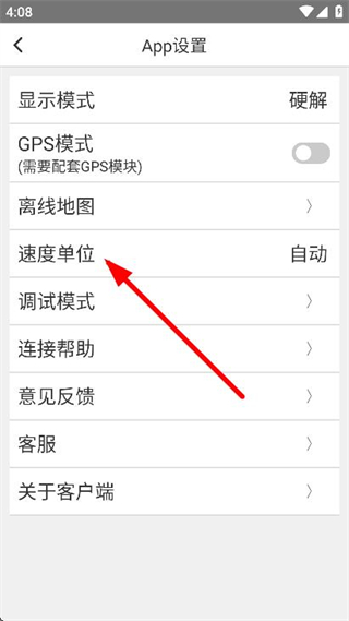 2、進(jìn)入App設(shè)置頁面后,找到并點擊上方速度單位選項。