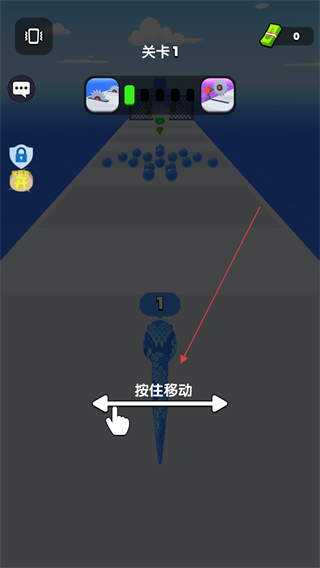 1、進(jìn)入游戲后,按住屏幕左右移動(dòng)控制蛇的方向。