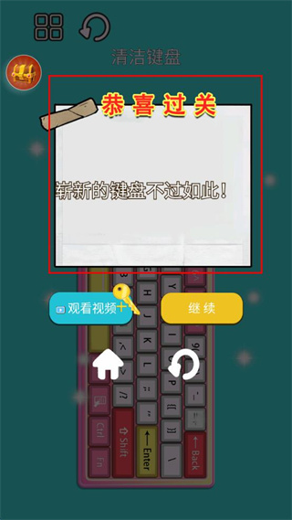 4、完成鍵盤清潔后,等待關(guān)卡結(jié)算界面彈出,點擊“繼續(xù)”按鈕進入后續(xù)流程。