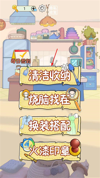 1、在游戲主界面中,選擇“清潔收納”選項,進入對應的功能選擇頁面。