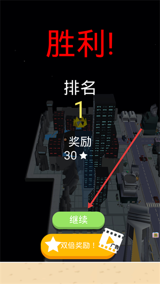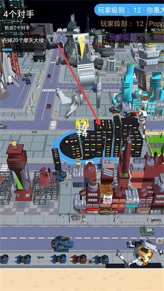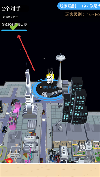 4、持續(xù)吞噬建筑和對手,完成關(guān)卡目標(biāo)后即可獲得獎勵,不斷挑戰(zhàn)更高難度的關(guān)卡。
