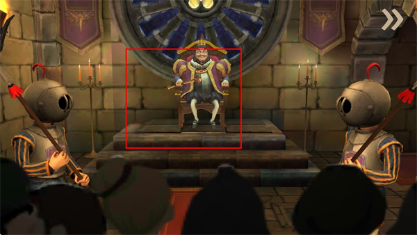 4、進入王座廳場景,查看王座上的角色,完成當(dāng)前階段的探索目標(biāo)。