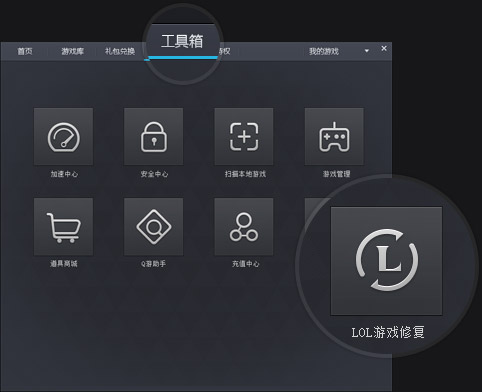點擊騰訊游戲平臺(TGP)上部導航條,工具箱入口的LOL游戲修復,再點擊TGP面板游戲圖標下的“開始游戲”按鈕,即可進行游戲。更多功能,更多精彩,盡在騰訊游戲平臺(TGP)!